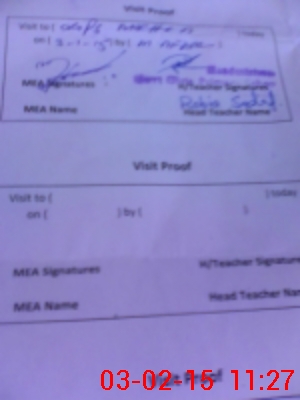 | Attendance Register | Head Teacher | MEA with School | Visit Proof |