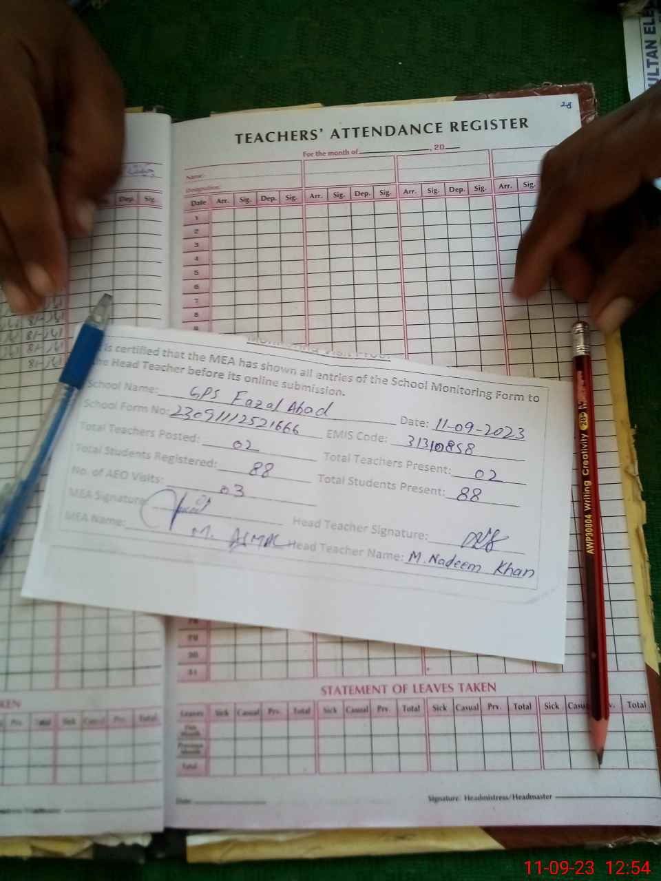 | Attendance Register | Head Teacher | MEA with School | Visit Proof |