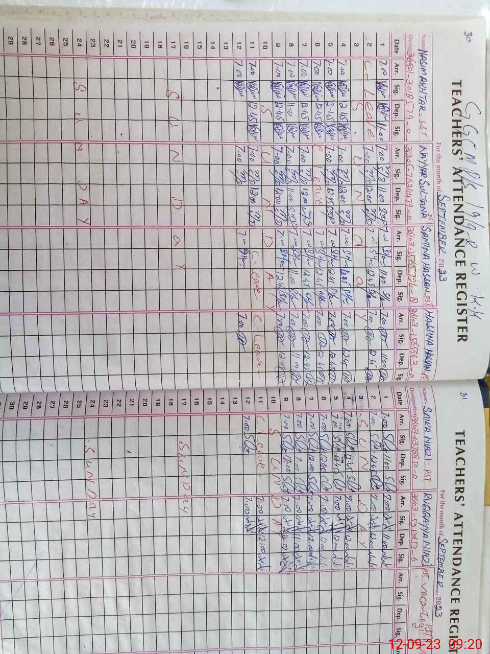 | CNIC | Full Name | Designation | R/C | Absence During Last Calender Month |