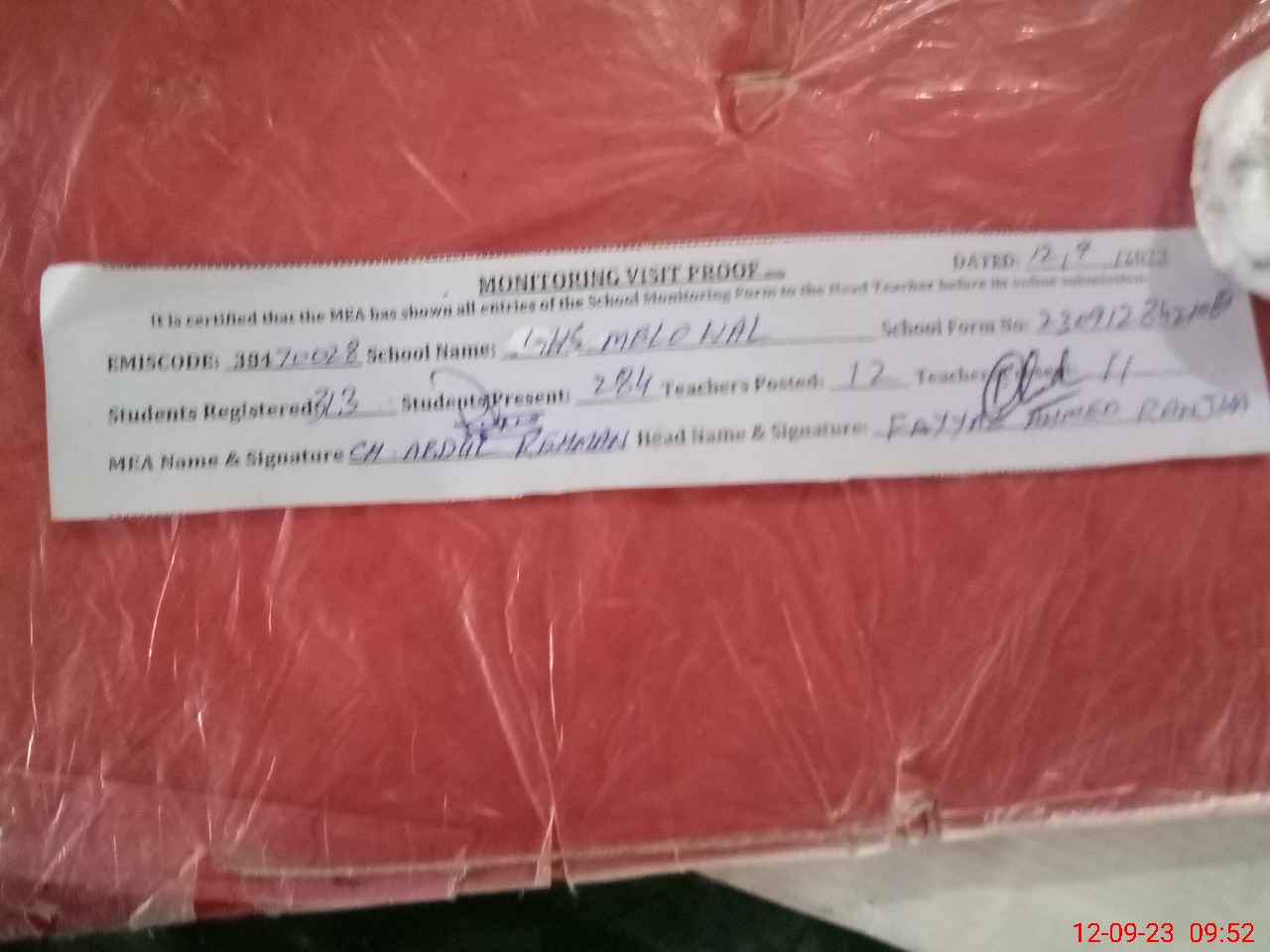 | EMIS Code: 38470028 | Name of School: GHS MELO WAL | |||