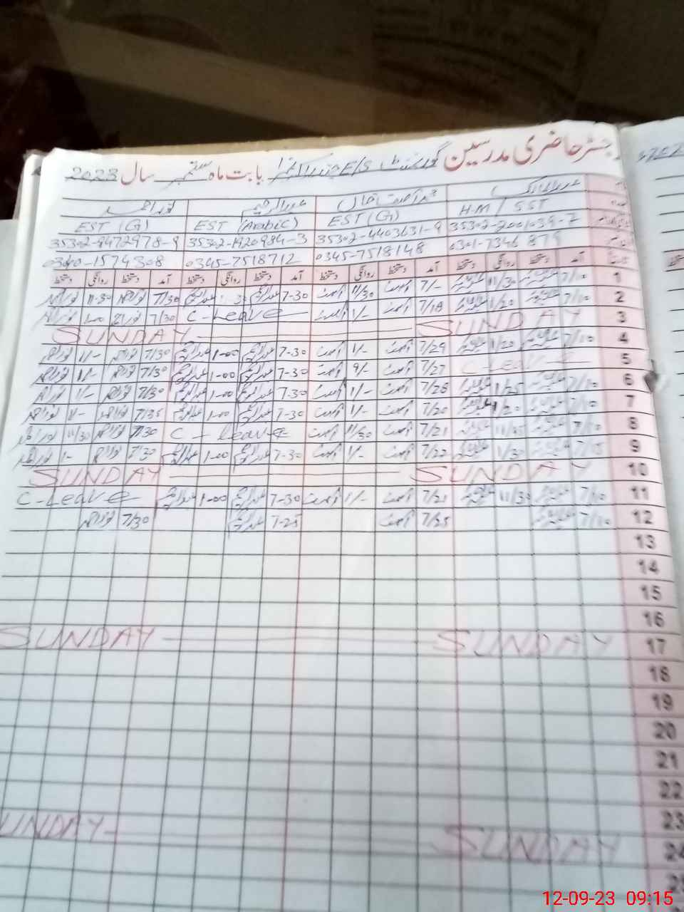 | CNIC | Full Name | Designation | R/C | Absence During Last Calender Month |
