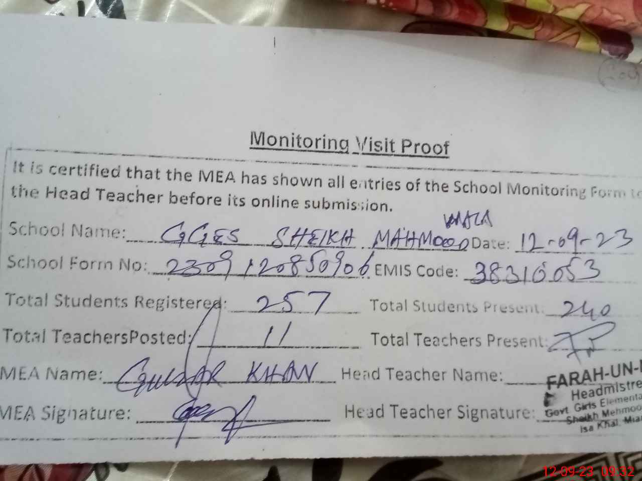 | EMIS Code: 38310053 | Name of School: GGES SHEIKH MEHMOOD WALA | |||