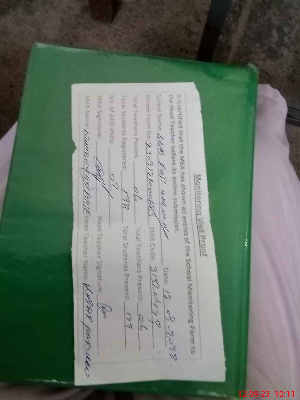 | Certified that this School was Inspected by the Undersigned MEA/DMO Today and the Information Stated Above is as Per Record. | |||||