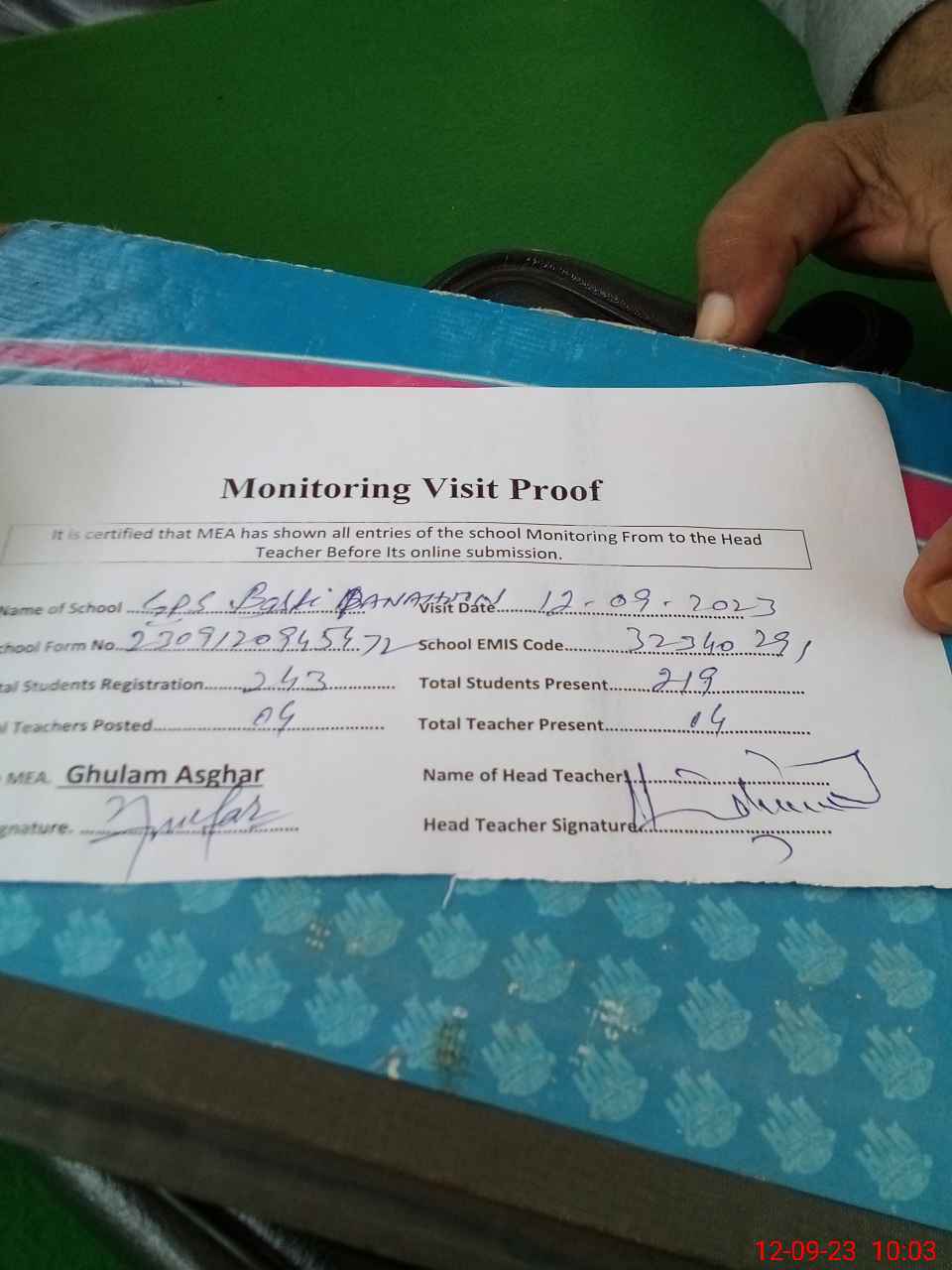 | Monitoring Date: 12-09-2023 | Start Time: 12-09-2023 09:45 AM | End Time: 12-09-2023 10:10 AM | Name of MEA: Gh**** As**** (R**** 02**** | |