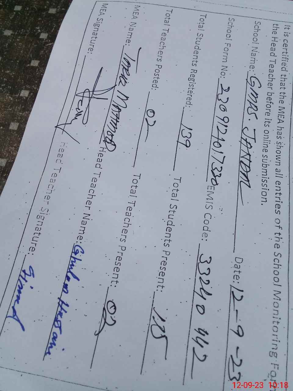 | EMIS Code: 33240442 | Name of School: GMPS JANDAL | |||