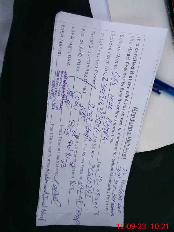 | EMIS Code: 31310291 | Name of School: GES MUD BHOORA | |||