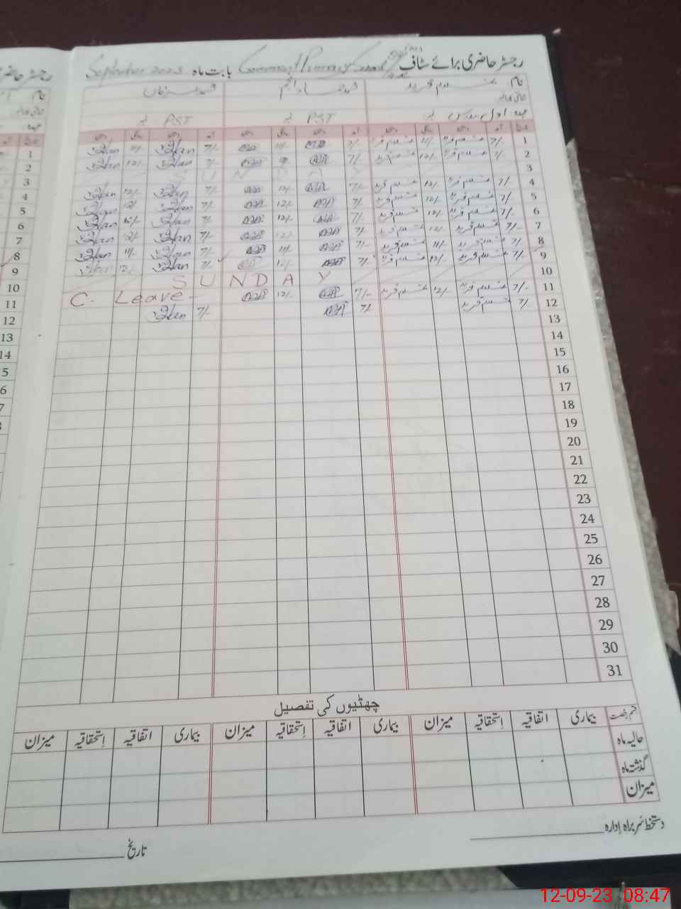 | CNIC | Full Name | Designation | R/C | Absence During Last Calender Month |