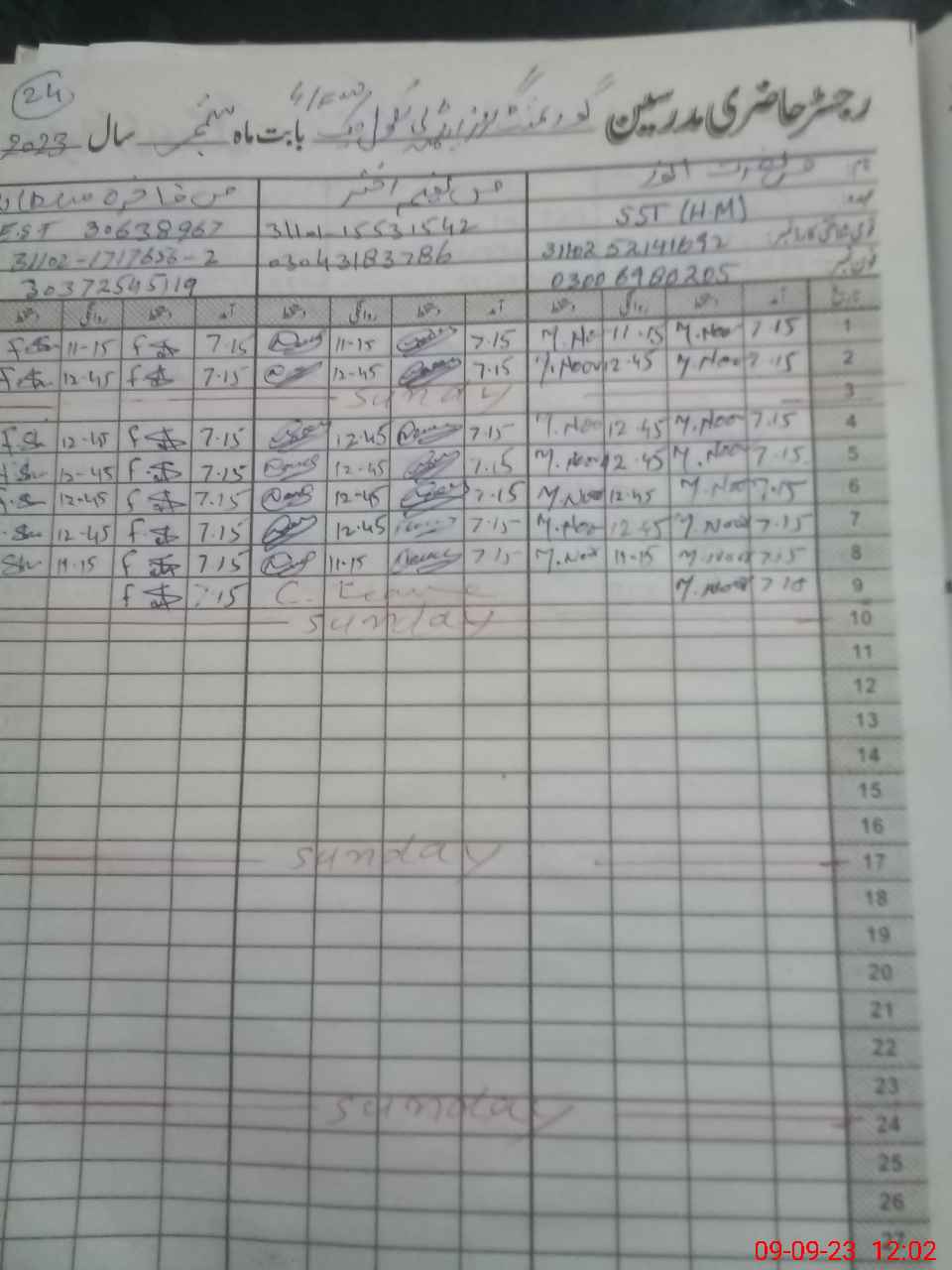 | Name: NU**** AN**** Designation: (School Headmaster's/Headmistress's) S.S.T.(RTS Phone/Cell Number: 03**** |