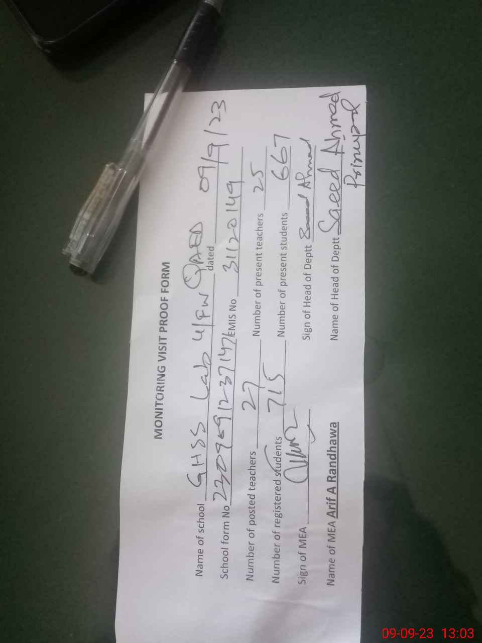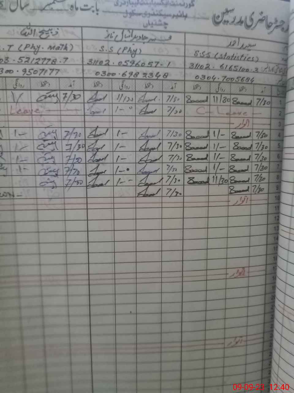| EMIS Code: 31120149 | Name of School: GHSS LABORATORY 4/FW (ATTACH WITH QAED) CHISHTIAN | |||