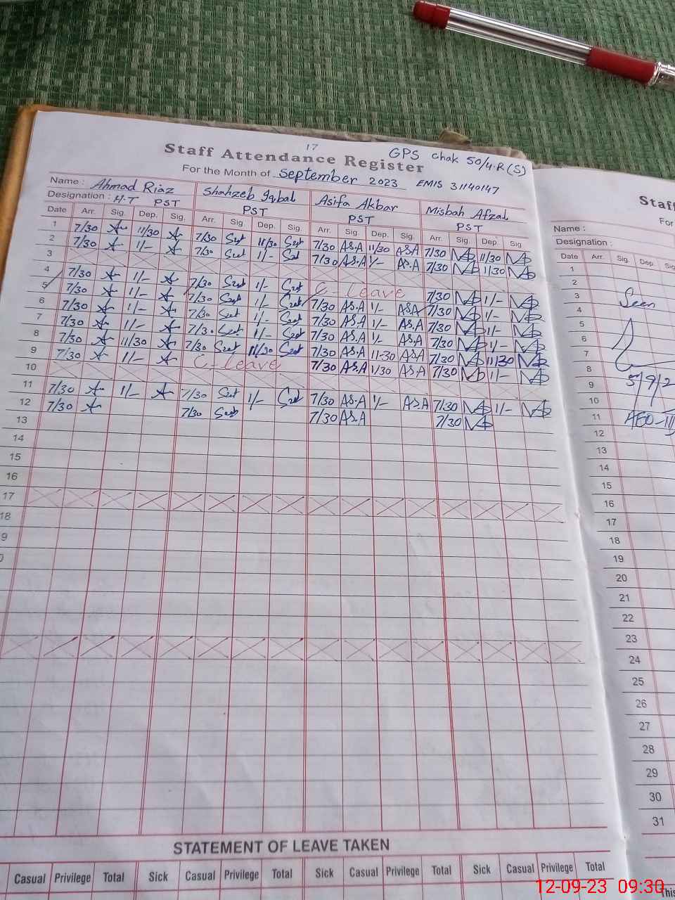 | Name: AH**** RI**** Designation: (School Headmaster's/Headmistress's) PTC Phone/Cell Number: 03**** |