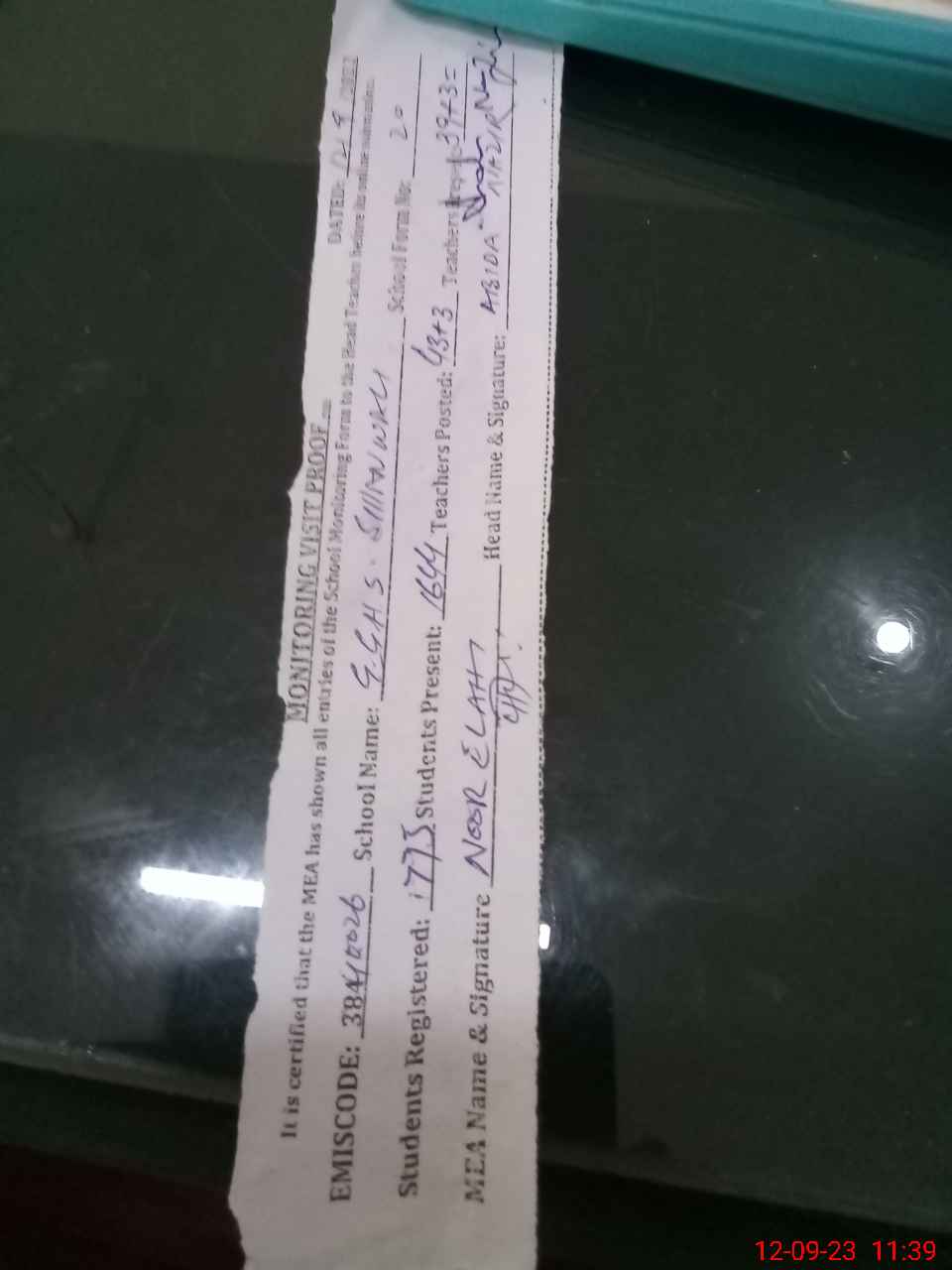 | Attendance Register | Head Teacher | MEA with School | Visit Proof |