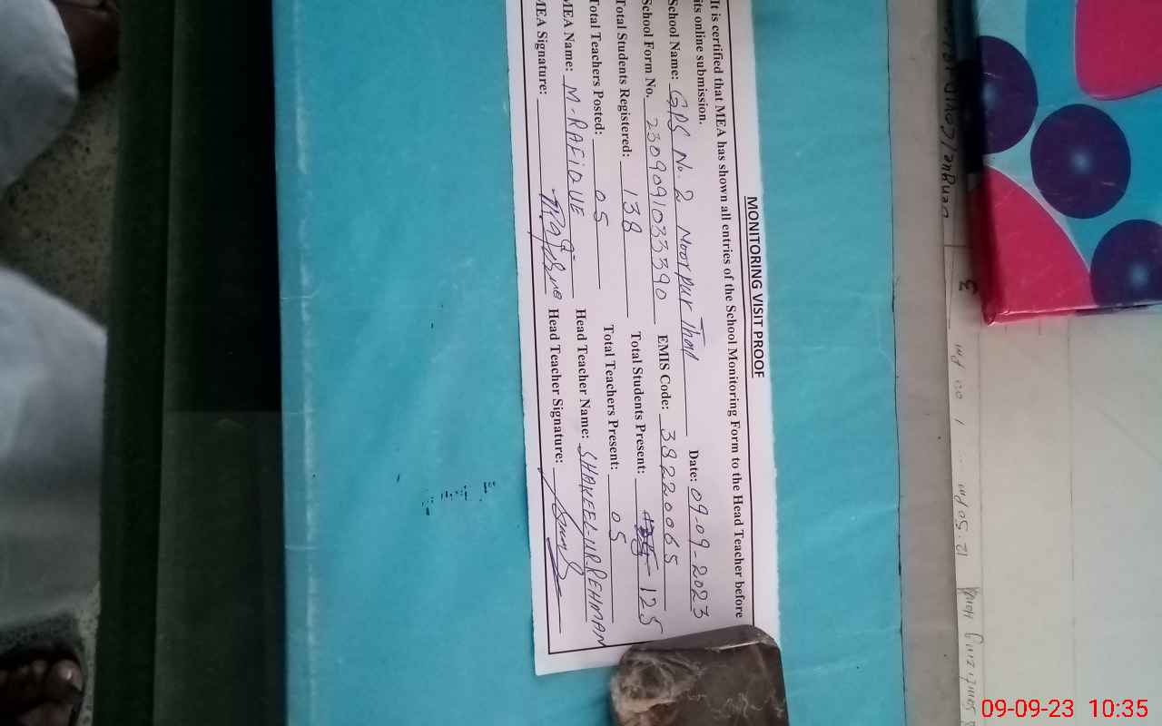 | EMIS Code: 38220065 | Name of School: GPS NO. 2 NOOR PUR THAL | |||