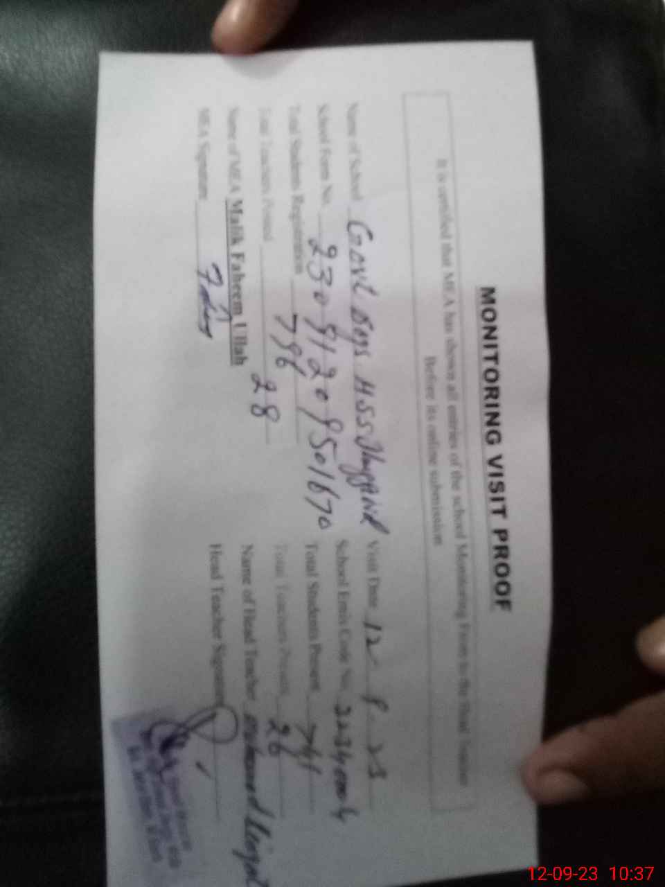 | Attendance Register | Head Teacher | MEA with School | Visit Proof |