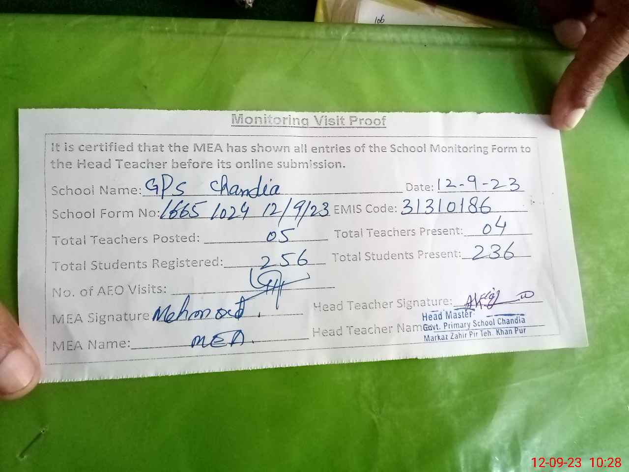 | EMIS Code: 31310186 | Name of School: GPS CHANDIA (After Noon) | |||