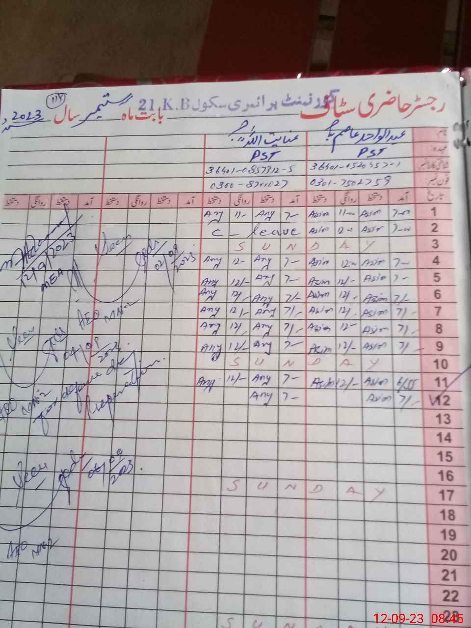 | Name: ZA**** AS**** Designation: (School Headmaster's/Headmistress's) PST Phone/Cell Number: 03**** |