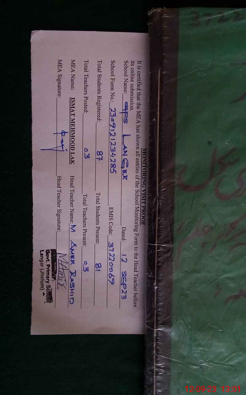 | Attendance Register | Head Teacher | MEA with School | Visit Proof |