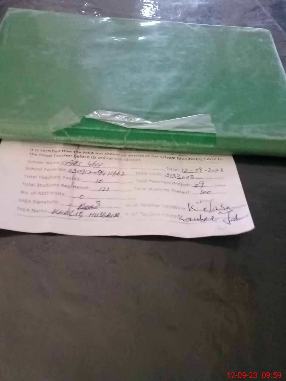 | Attendance Register | Head Teacher | MEA with School | Visit Proof |