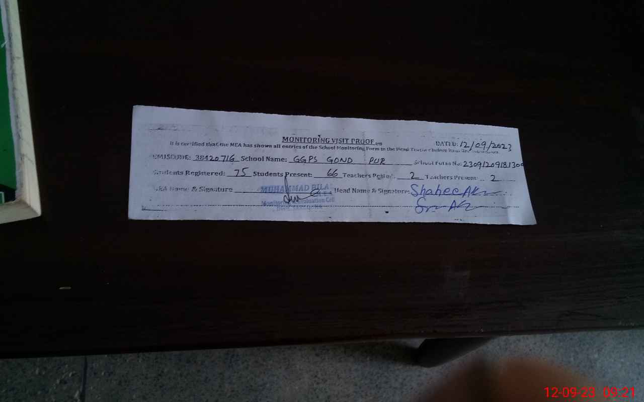 | EMIS Code: 38470716 | Name of School: GGPS GOND PUR | |||