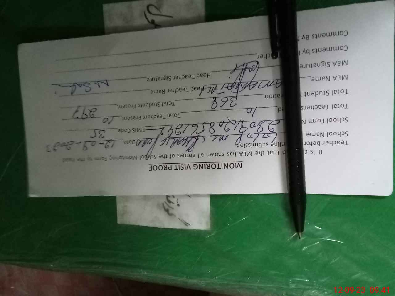| Attendance Register | Head Teacher | MEA with School | Visit Proof |
