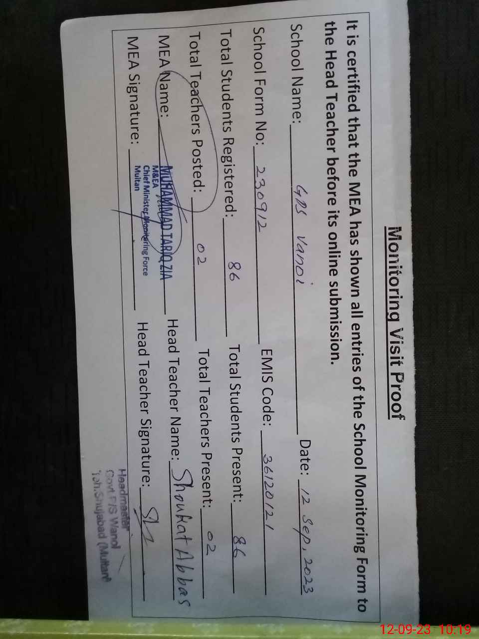 | EMIS Code: 36120121 | Name of School: GPS VANOI MOUZA VANOI P.O MATOTLI TEH.SHUJABAD | |||