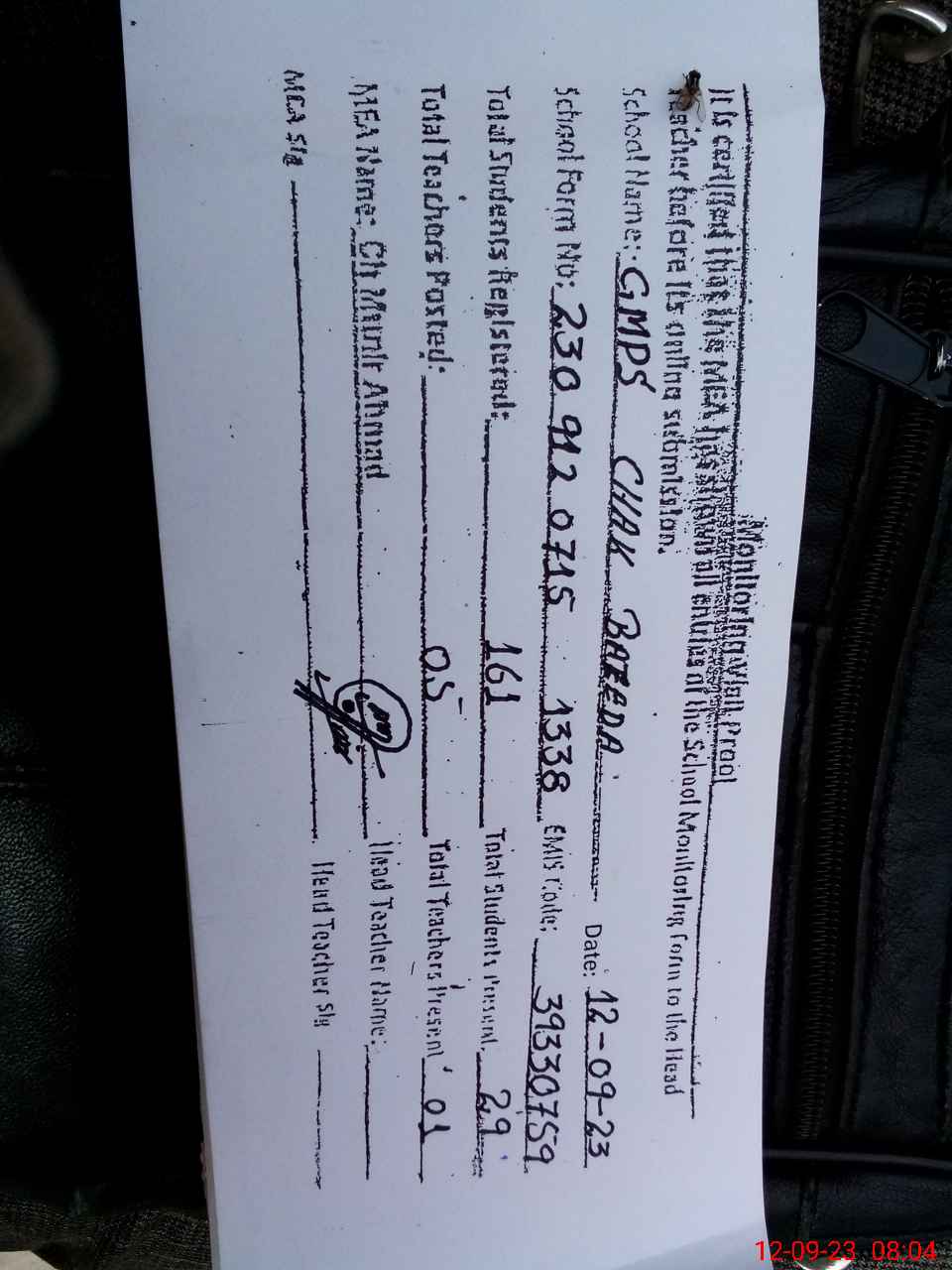 | EMIS Code: 39330759 | Name of School: GMPS CHAK BAZEEDA | |||