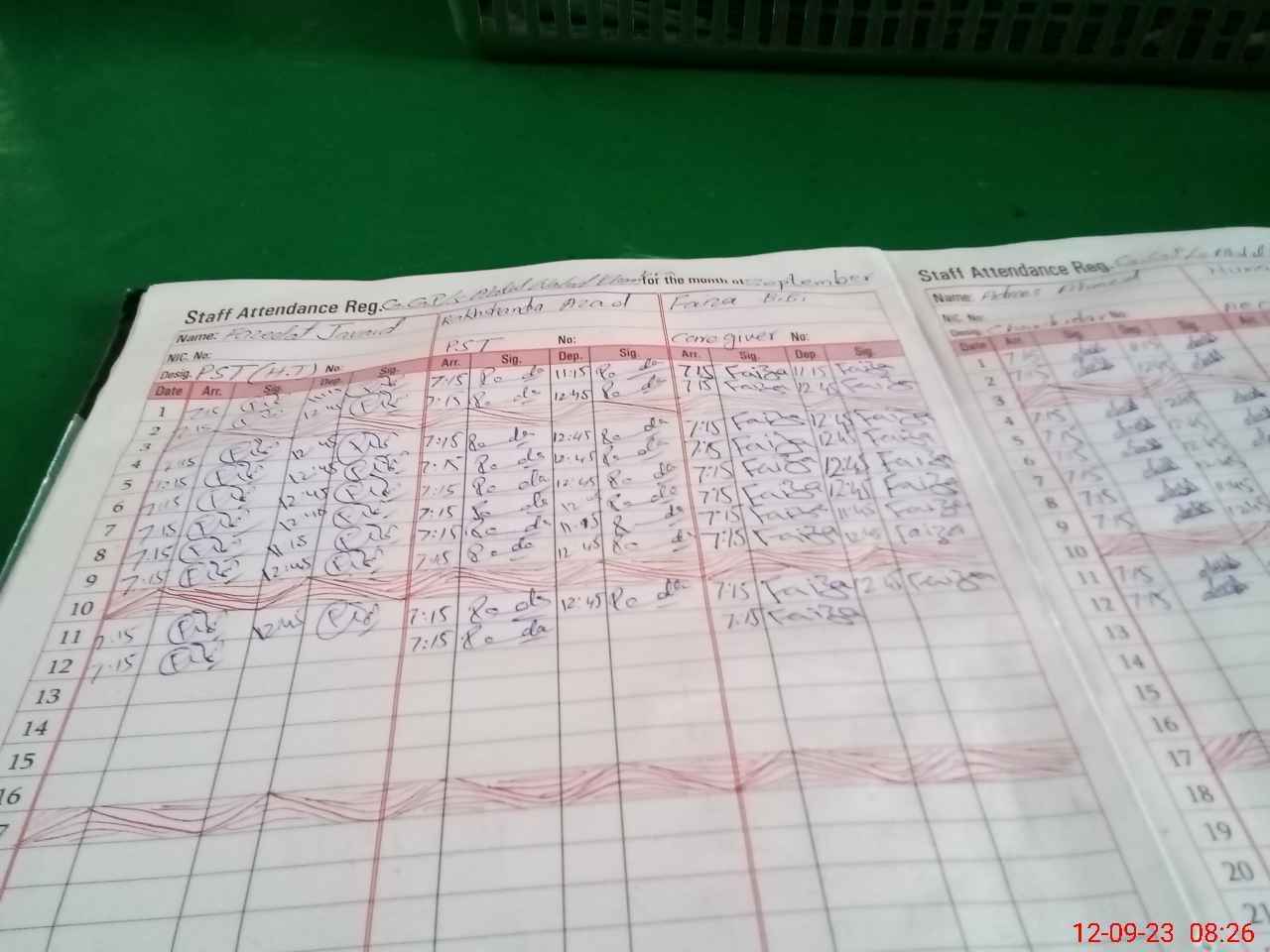 | CNIC | Full Name | Designation | R/C | Absence During Last Calender Month |