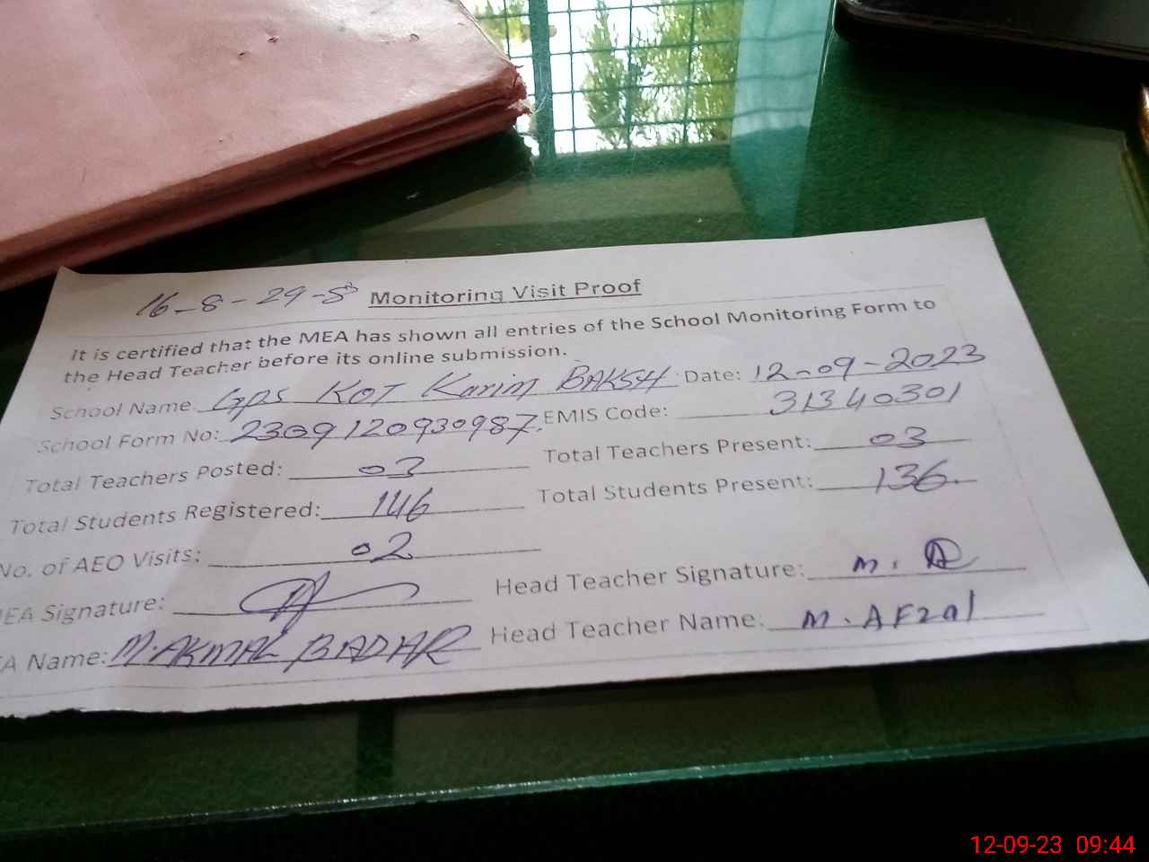 | EMIS Code: 31340301 | Name of School: GPS KOT KARIM BAKHSH | |||