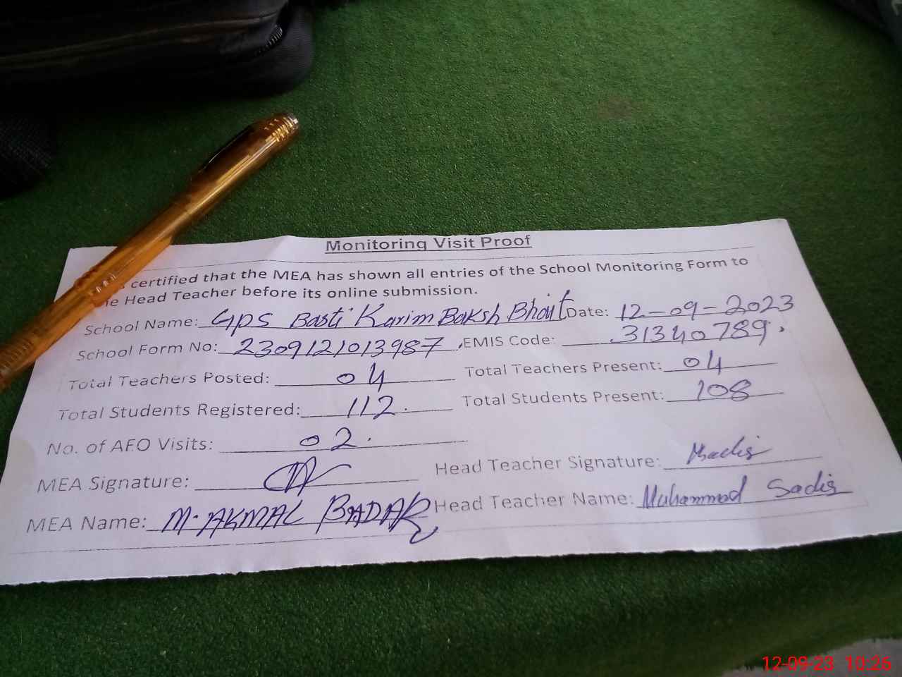 | EMIS Code: 31340789 | Name of School: GPS BASTI KARIM BAKHSH BHAIT | |||