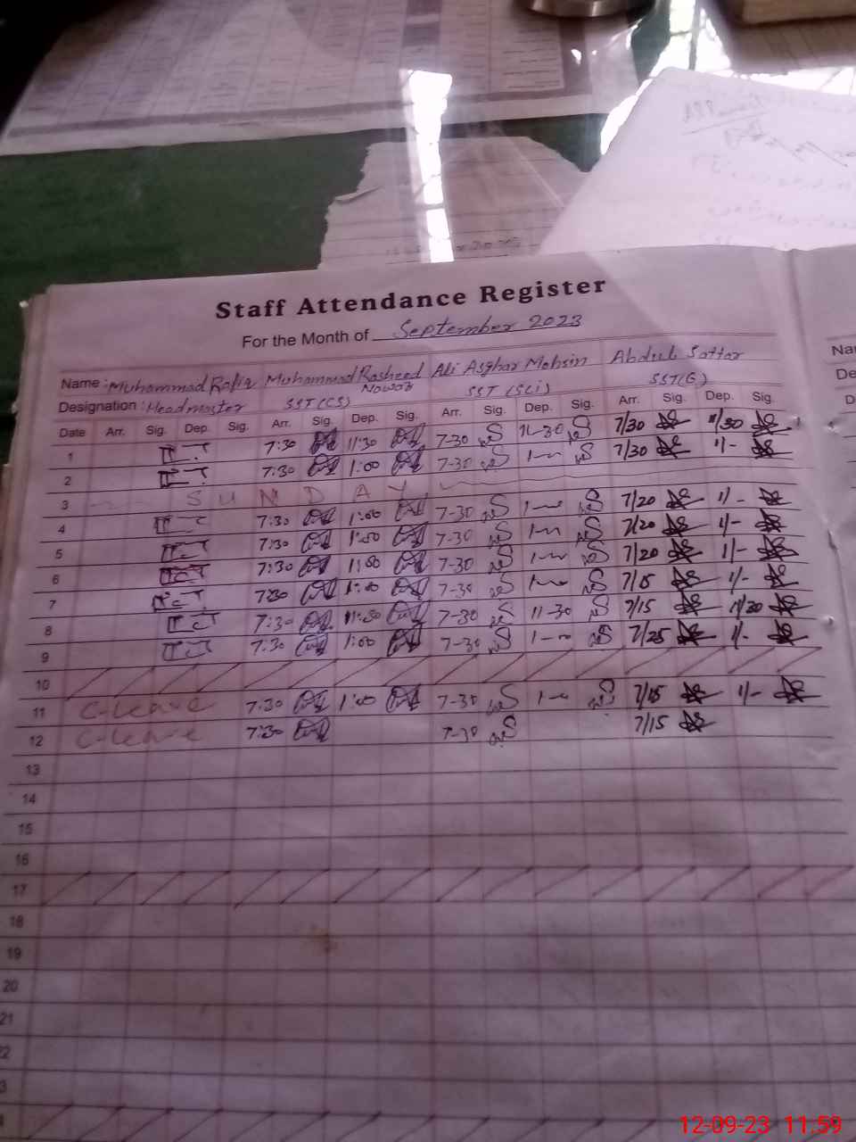 | CNIC | Full Name | Designation | R/C | Absence During Last Calender Month |