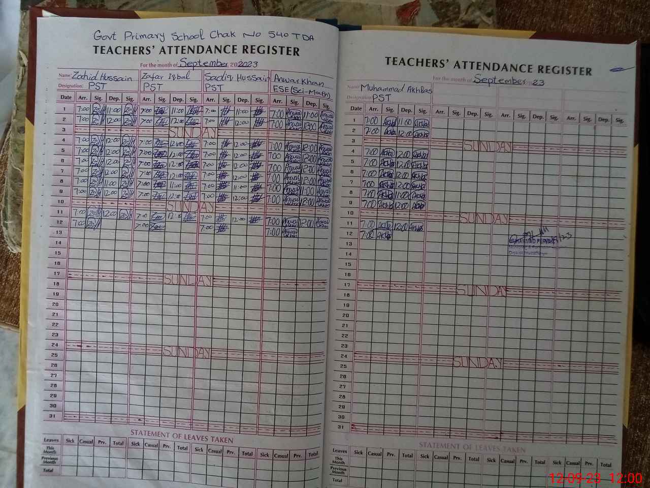 | Name: SA**** HU**** Designation: (School Headmaster's/Headmistress's) PST Phone/Cell Number: 03**** |
