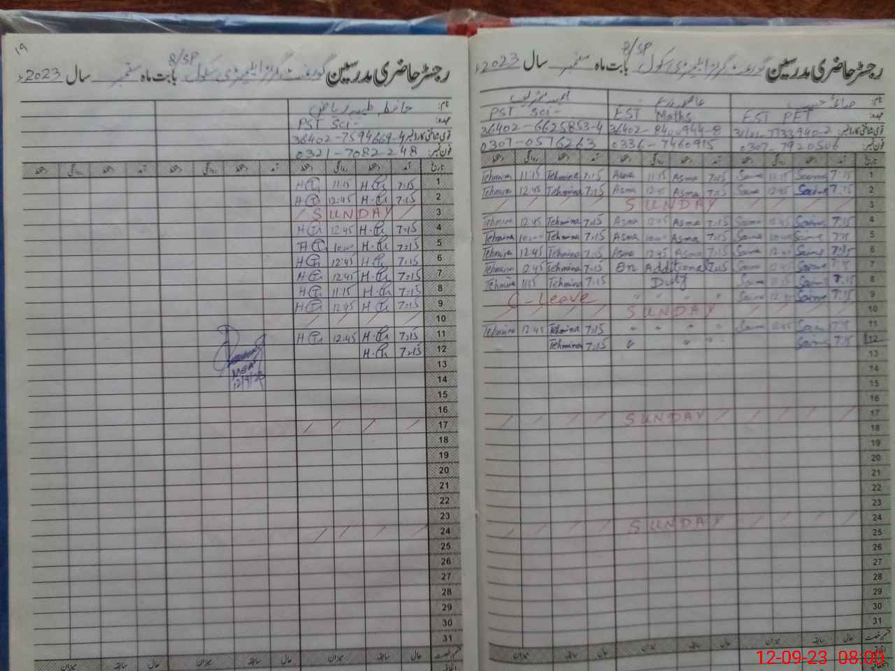 | Name: Gh**** Fa**** Designation: (School Headmaster's/Headmistress's) SST Science Phone/Cell Number: 03**** |
