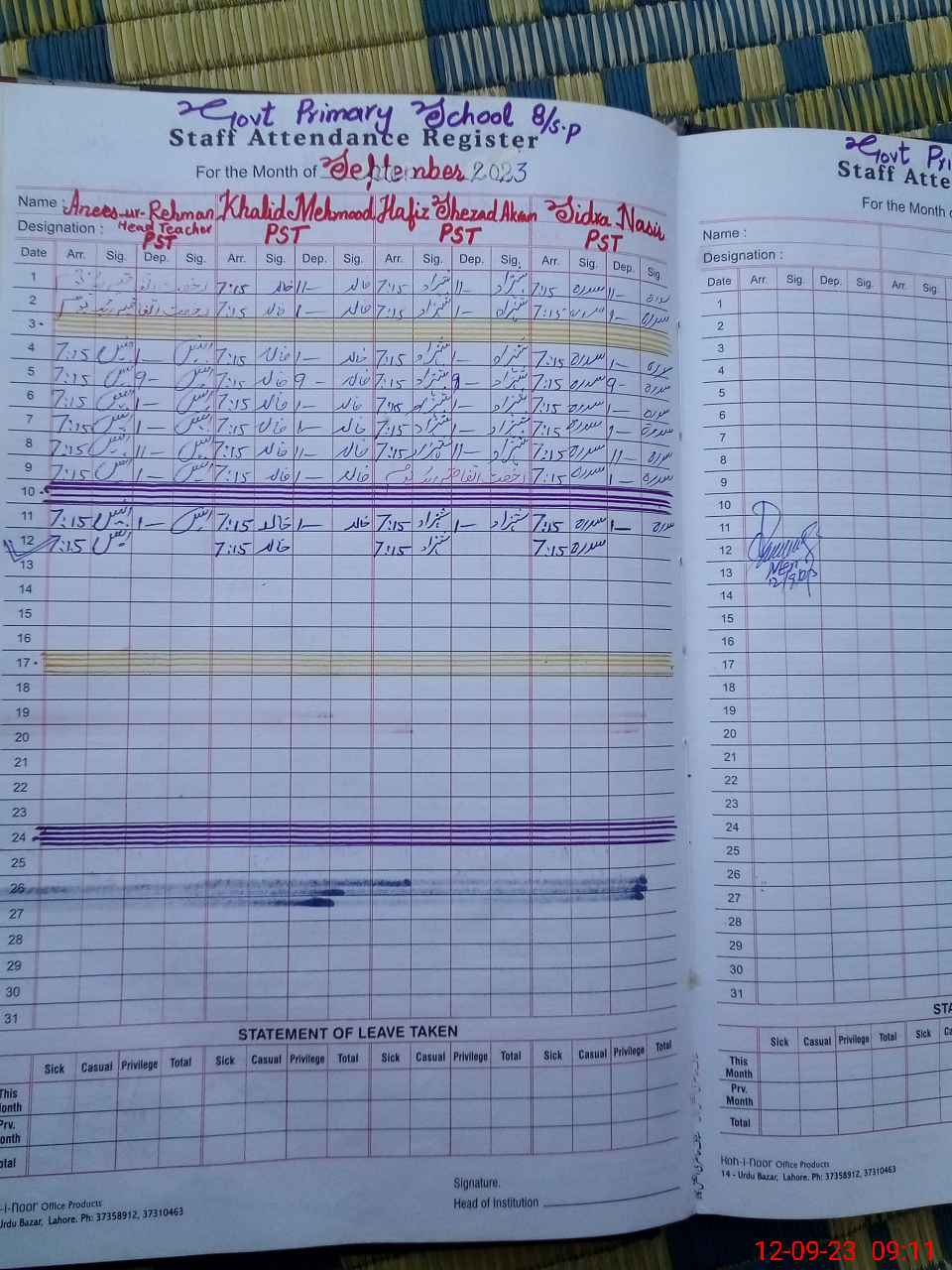 | Name: An**** Designation: (School Headmaster's/Headmistress's) PST Phone/Cell Number: 03**** |