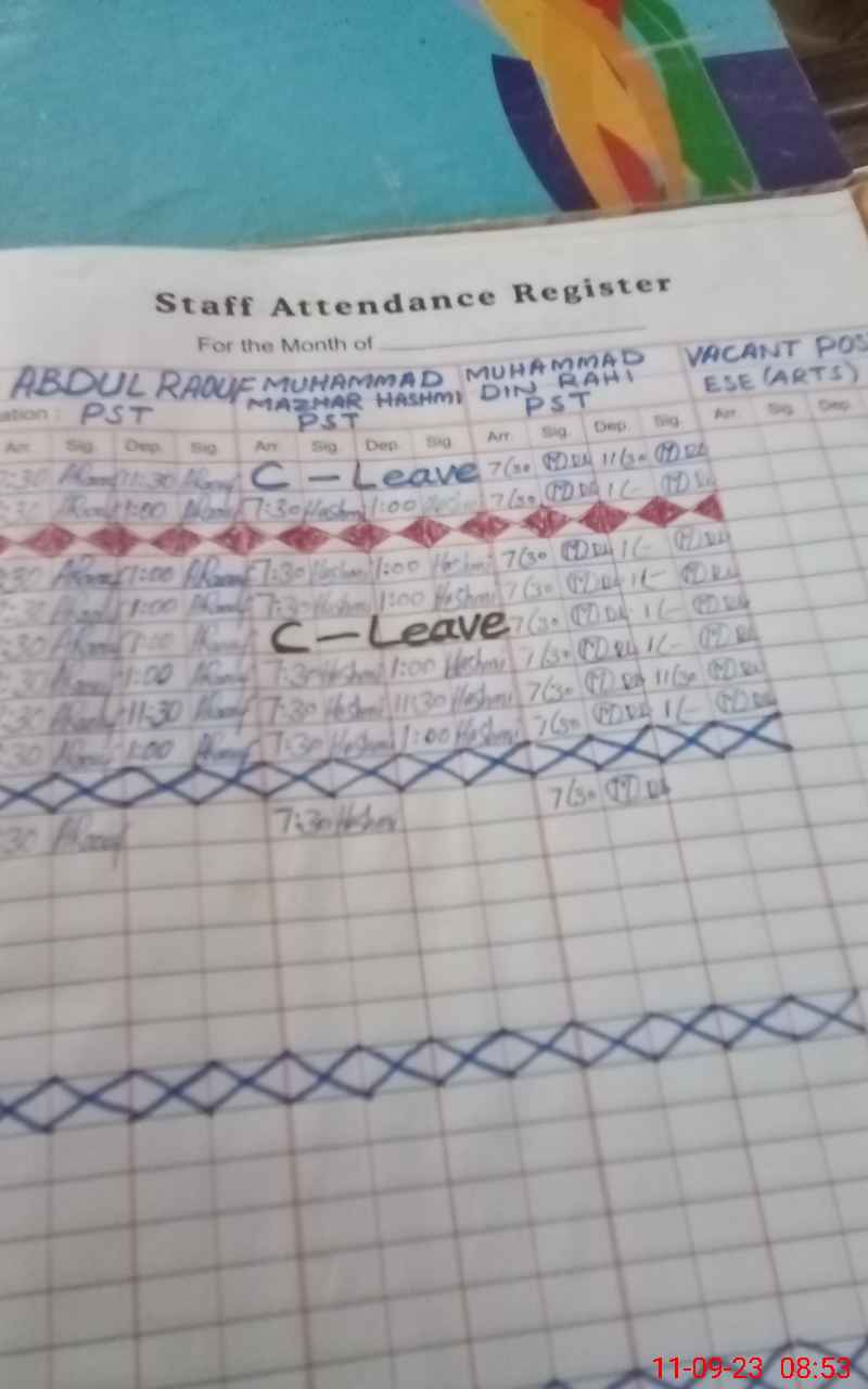 | Name: Ab**** Ra**** Designation: (School Headmaster's/Headmistress's) PST Phone/Cell Number: 03**** |