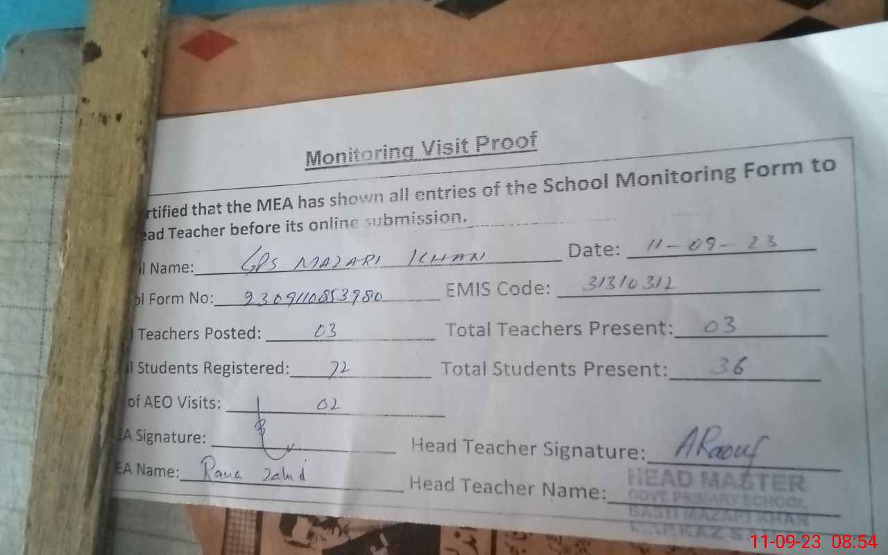 | EMIS Code: 31310312 | Name of School: GPS MAZARI KHAN | |||