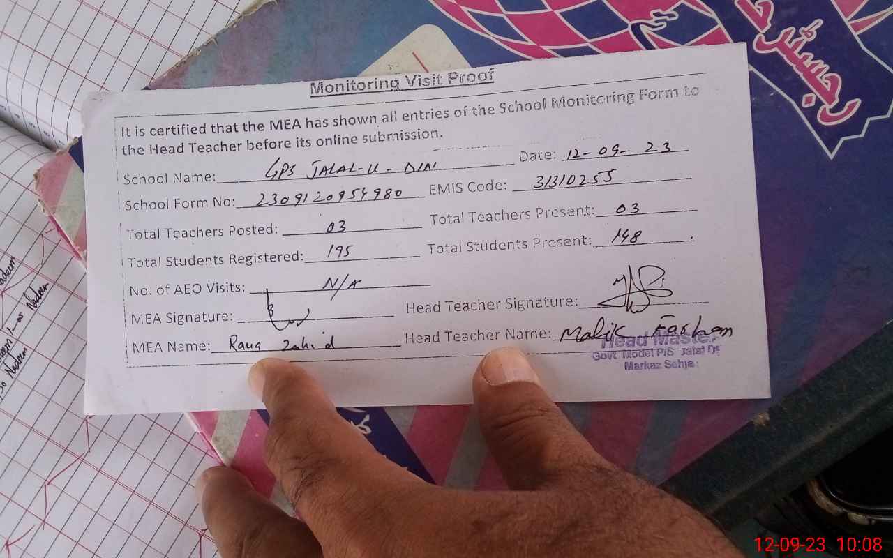 | EMIS Code: 31310255 | Name of School: GPS JALAL-UD-DIN | |||