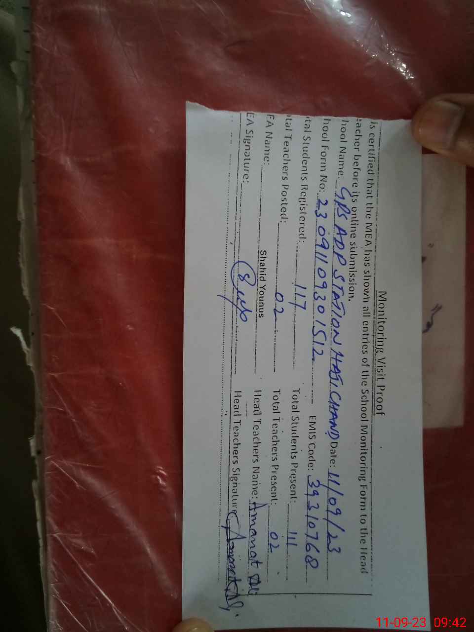 | EMIS Code: 39310768 | Name of School: GPS ADP STATION HAJI CHAND | |||