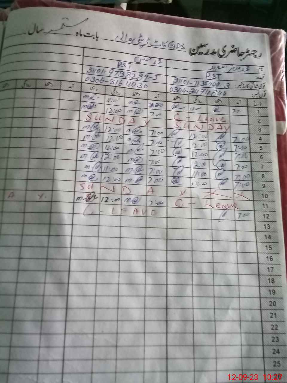 | CNIC | Full Name | Designation | R/C | Absence During Last Calender Month |