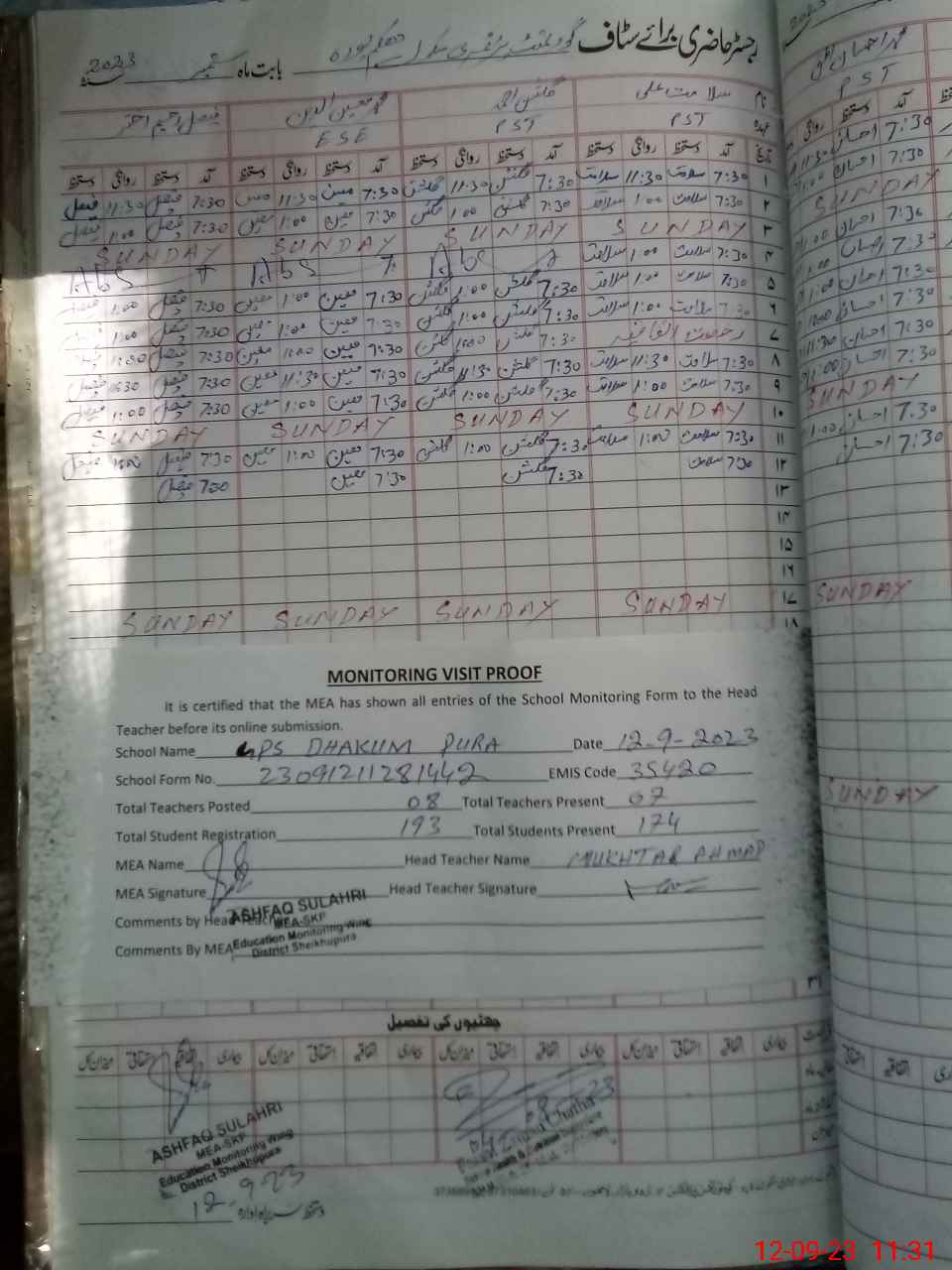 | EMIS Code: 35420238 | Name of School: GPS DHAKUM PURA | |||