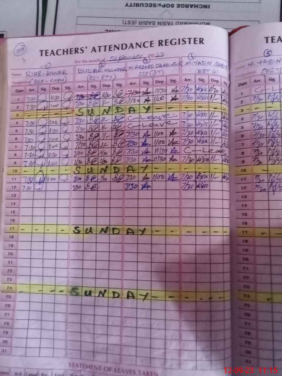 | 35**** | Mu**** Ya**** | 1 | 0 | 0 | 0 | 0 | 0 | 0 | 0 | 0 | 0 | Absent (Un-Authorized) | |
