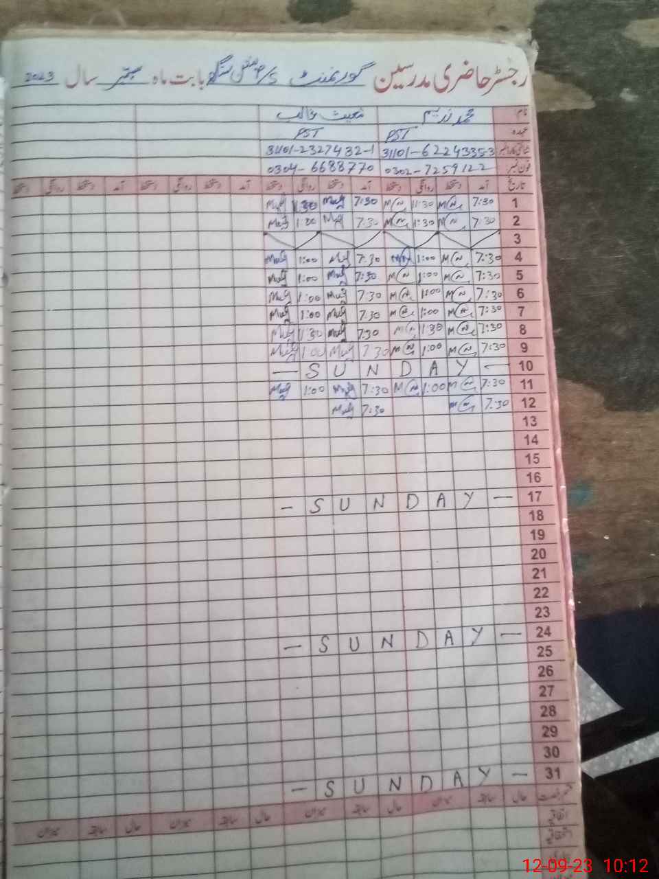 | Name: MU**** NA**** Designation: (School Headmaster's/Headmistress's) PST Phone/Cell Number: 03**** |