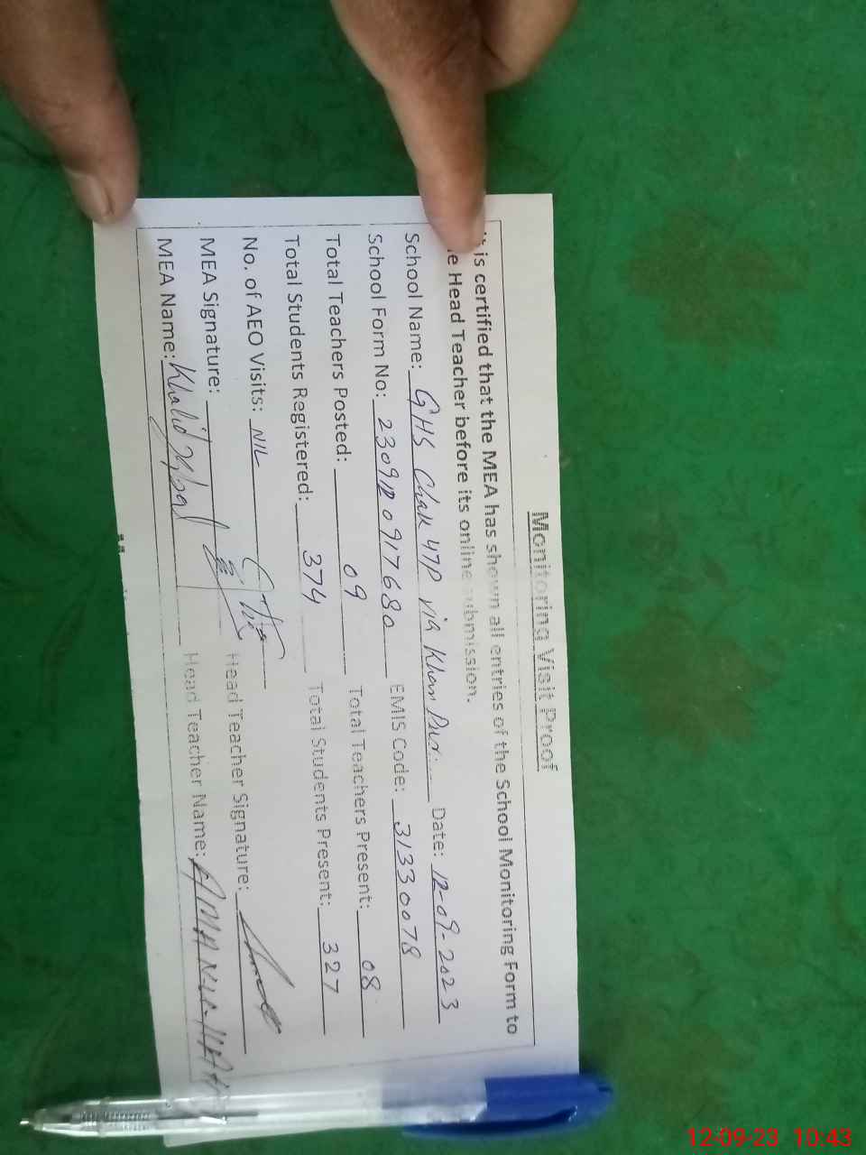 | EMIS Code: 31330078 | Name of School: GHS CHAK 47/P VIA KHAN PUR | |||