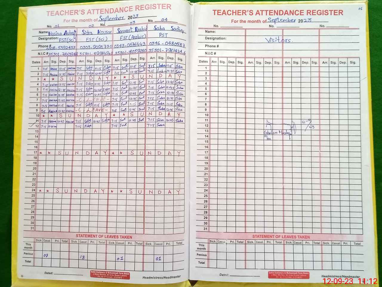 | Total no. of Classrooms: 10 No. of Classrooms Used for Teaching: 7 No. of Classrooms Storing Old Furniture, FTBs, etc: 0Comments if Any: Following 02 teachers has already been reported on permanent posting but their names not being shown in teaching staff list Kindly add their names accordingly 1 Saba Sadiq PSt reported on 23 June 2023 2 Sarwat Rasheed EST reported on 20 June 2023 Both t |