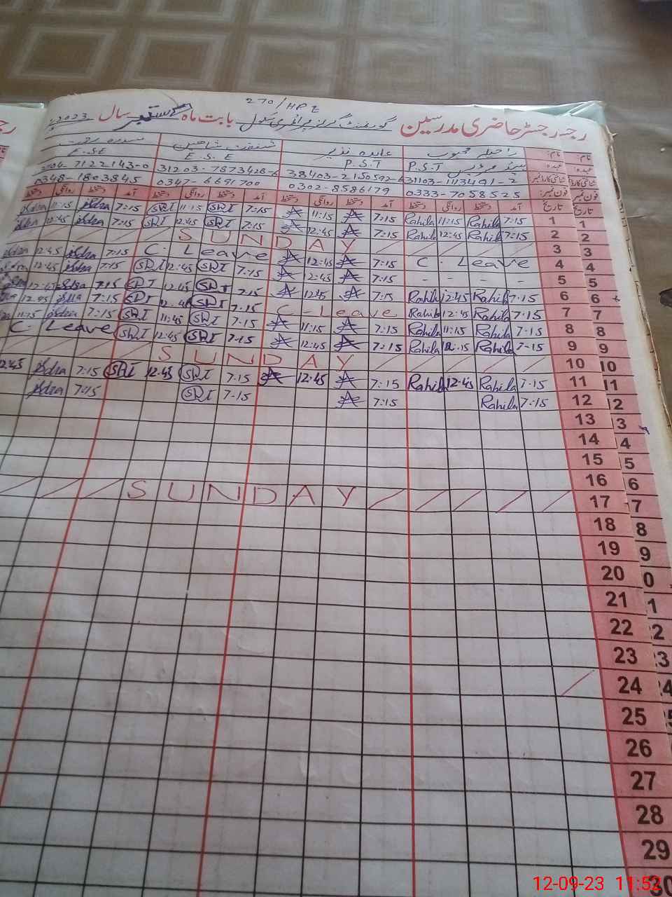 | CNIC | Full Name | Designation | R/C | Absence During Last Calender Month |