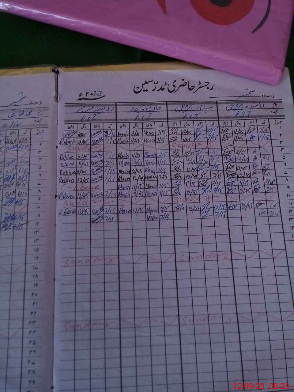 | CNIC | Full Name | Designation | R/C | Absence During Last Calender Month |