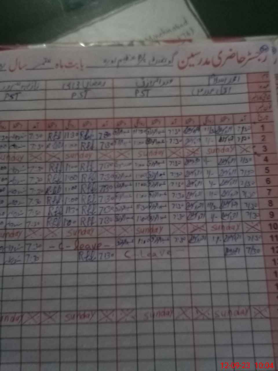 | Leave | Duty | Absent | Maternity | Medical | Ex- Pak |