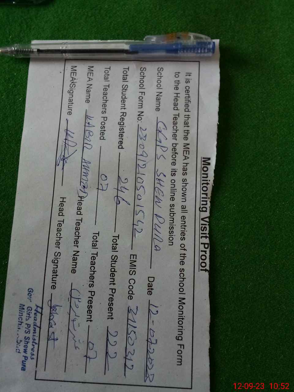 | EMIS Code: 31150312 | Name of School: GGPS SHEV PURA | |||