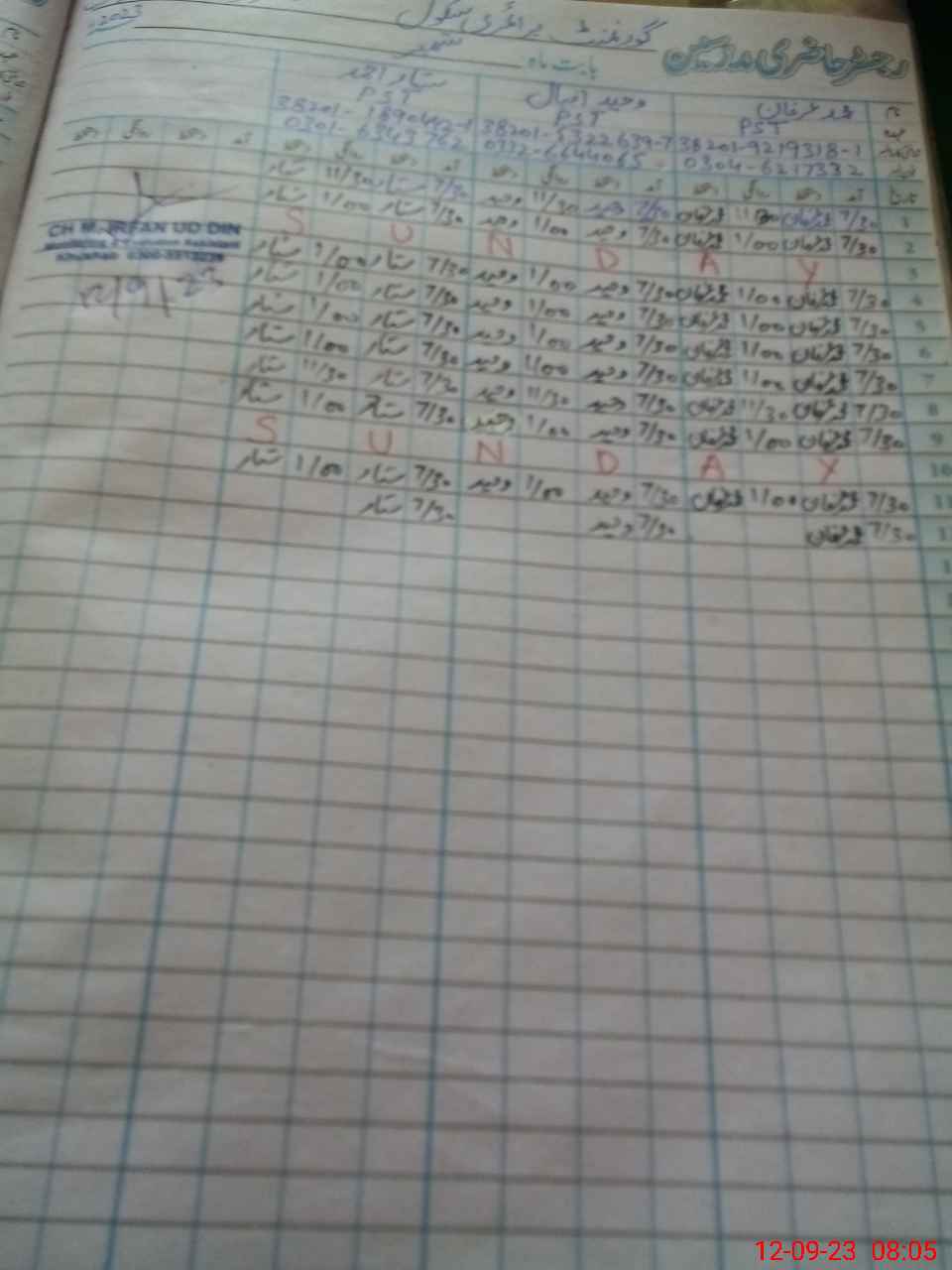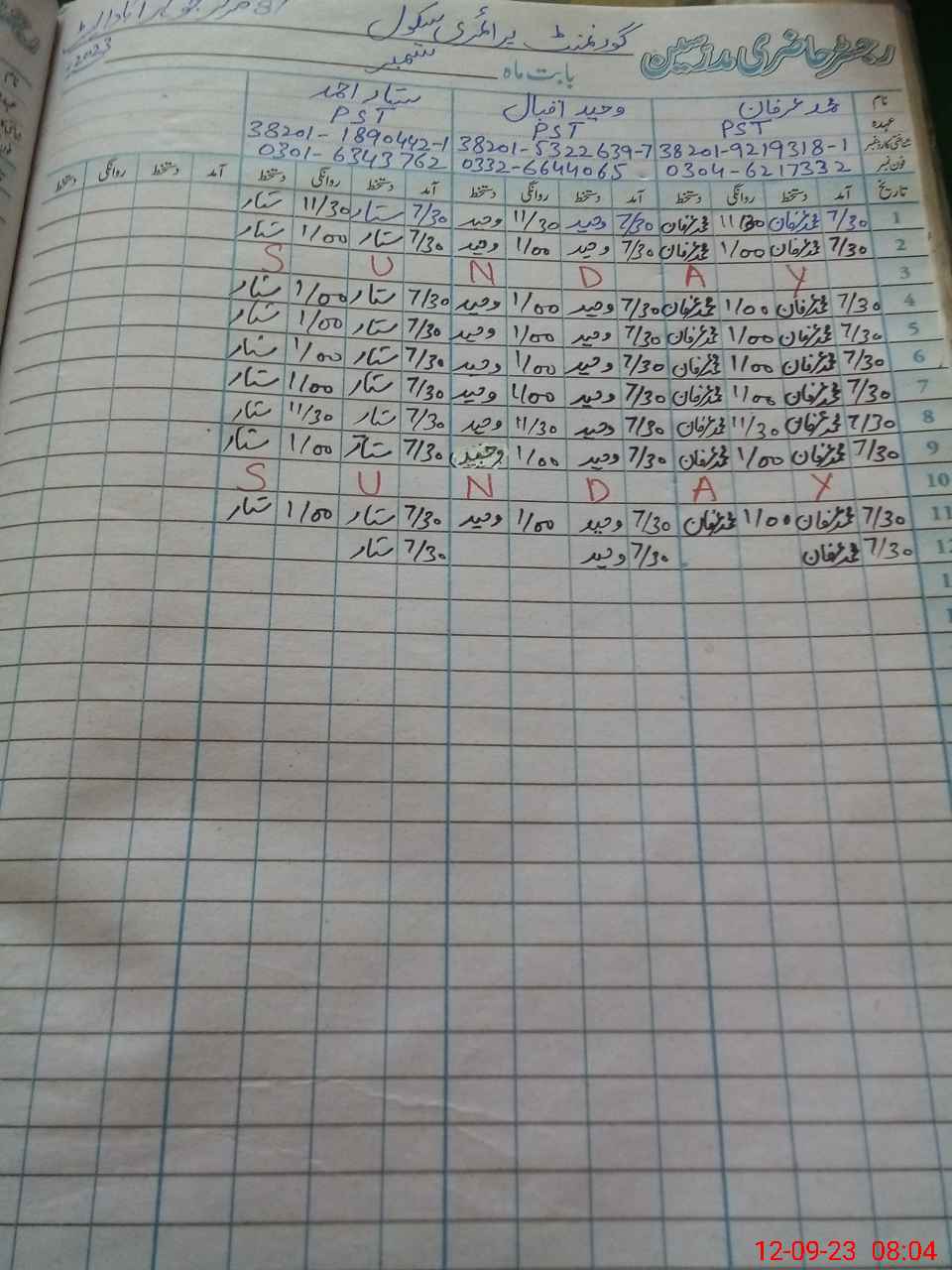 | Name: Mu**** Ir**** Designation: (School Headmaster's/Headmistress's) PST Phone/Cell Number: 03**** |