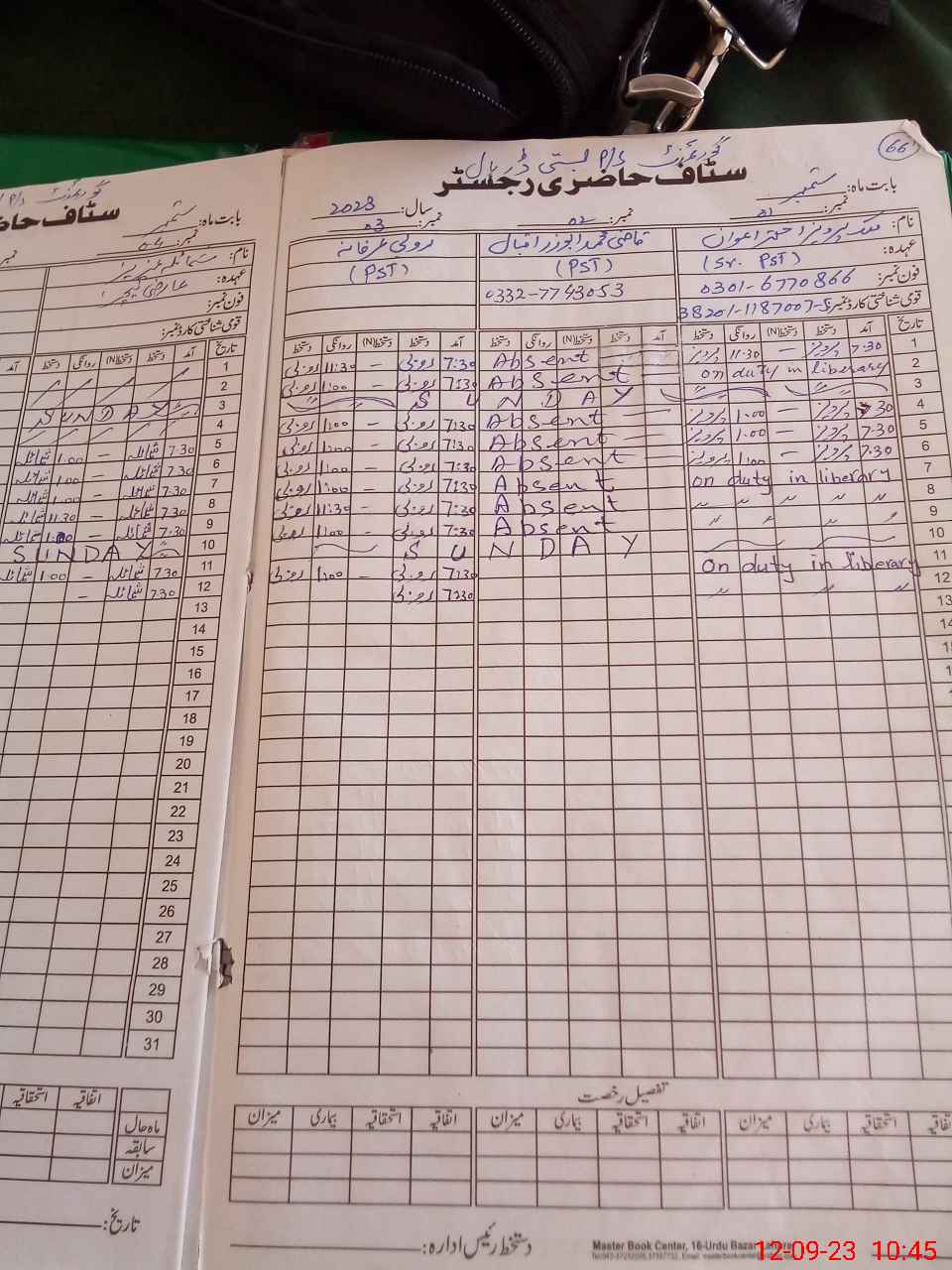 | CNIC | Full Name | Designation | R/C | Absence During Last Calender Month |