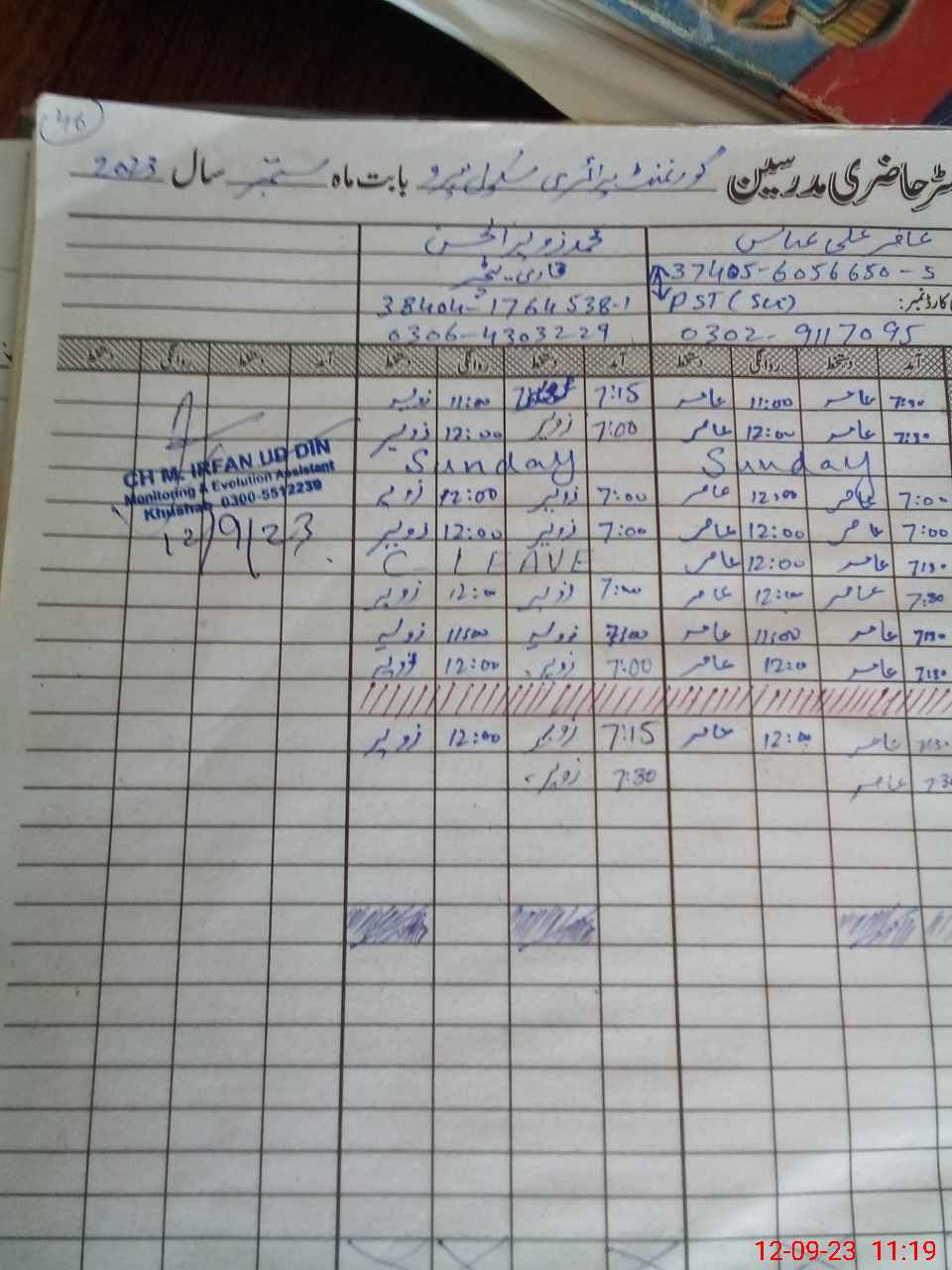 | Name: SA**** Kh**** Designation: (School Headmaster's/Headmistress's) Pst Phone/Cell Number: 03**** |