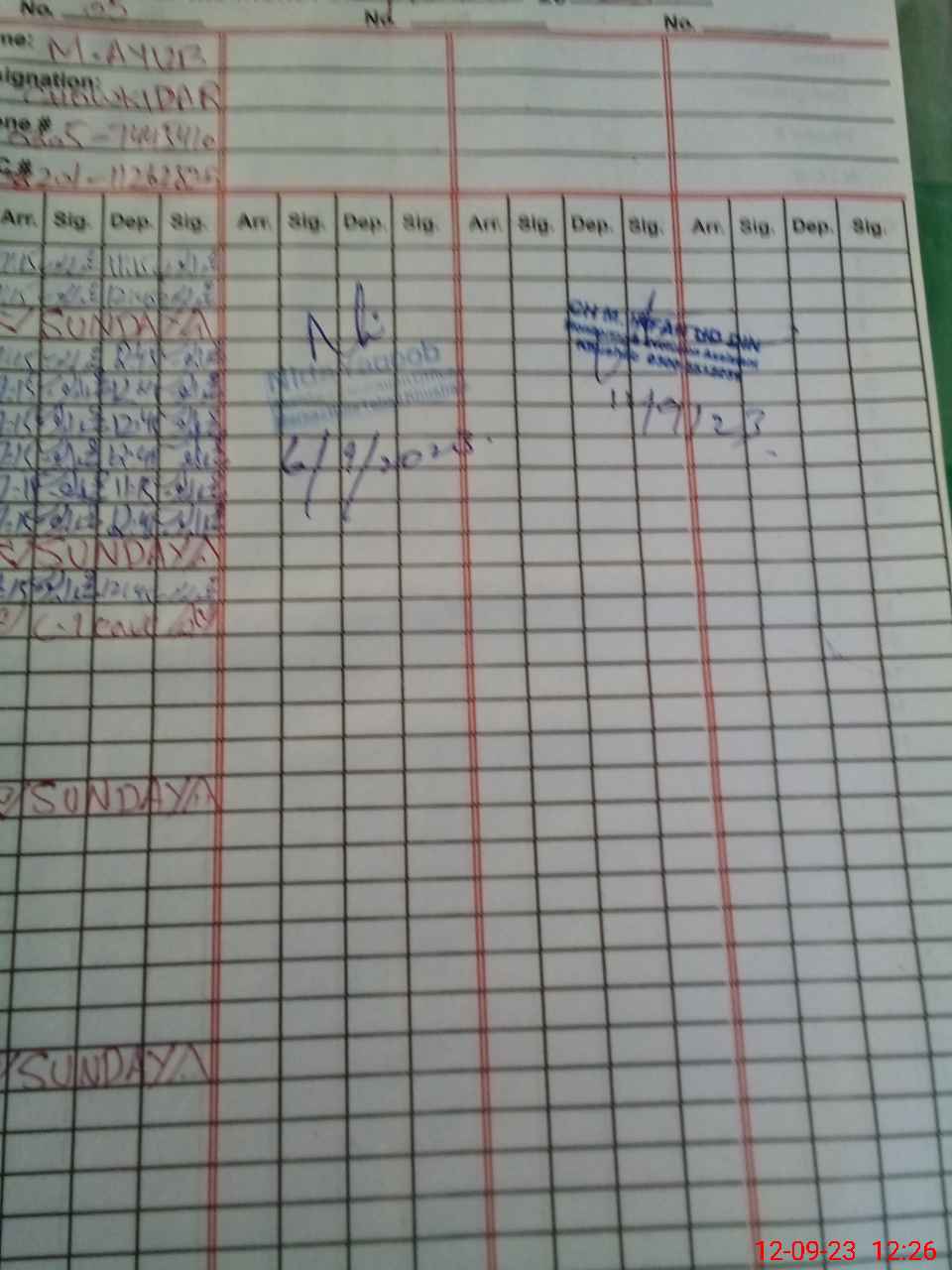 | CNIC | Full Name | Designation | R/C | Absence during last cal. month |